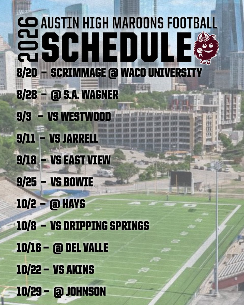 The Austin High Maroons will be members of a new-look District 26-6A starting in the Fall of 2026. Their district opponents for the next two years include: Akins, Bowie, Buda...